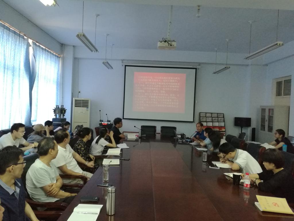 宣誓仪式后,王明有教授做了题为《回顾党的历史,争当出彩先锋》的专题党课,王老师以中国共产党发展历程中召开的重要会议为主线,回顾了中国共产党的发展变革与重要理论成就,使党员们了解到中国共产党从小到大、从弱到强不断发展壮大的光辉历程及其原因,并结合当前形势对教师党员就如何“争当出彩先锋”提出了具体建议。