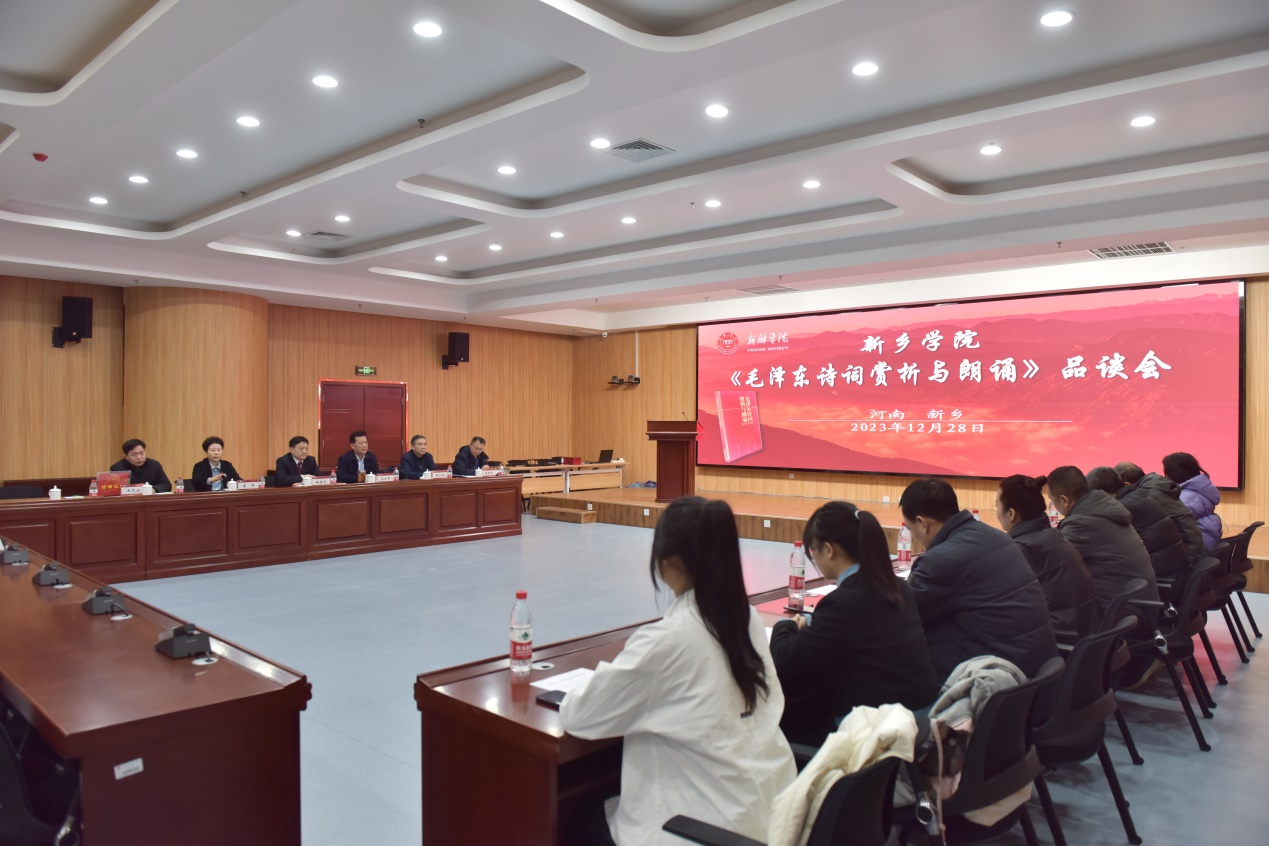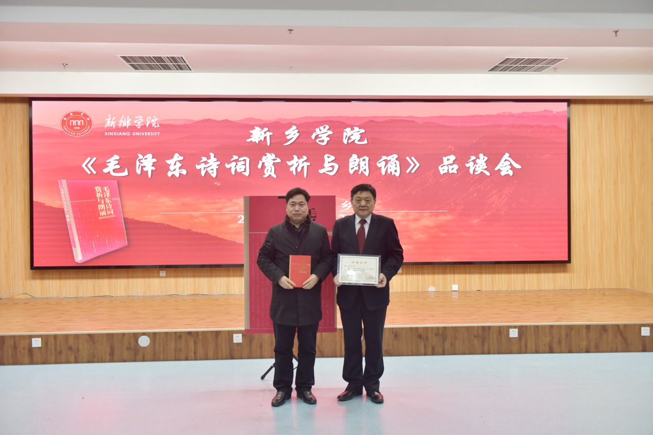 12月28日,在中国共产党、中国人民解放军和中华人民共和国的主要缔造者毛泽东同志诞辰130周年之际,我校在行政楼一楼东报告厅举办《毛泽东诗词赏析与朗诵》新书品谈会,共同感悟毛泽东诗词蕴含的革命理想和家国情怀,深切缅怀毛泽东同志的丰功伟绩和崇高风范。教育部语言文字应用管理司原司长、《毛泽东诗词赏析与朗诵》作者姚喜双教授,williamhill中文党委书记孙功奇,党委副书记、工会主席高炜,副校长张占祯、纪委书记鲍晋选、副校长王天云、相关职能部门负责人及WilliamHill威廉希尔师生共100余人参加了品谈会。会议由高炜主持。