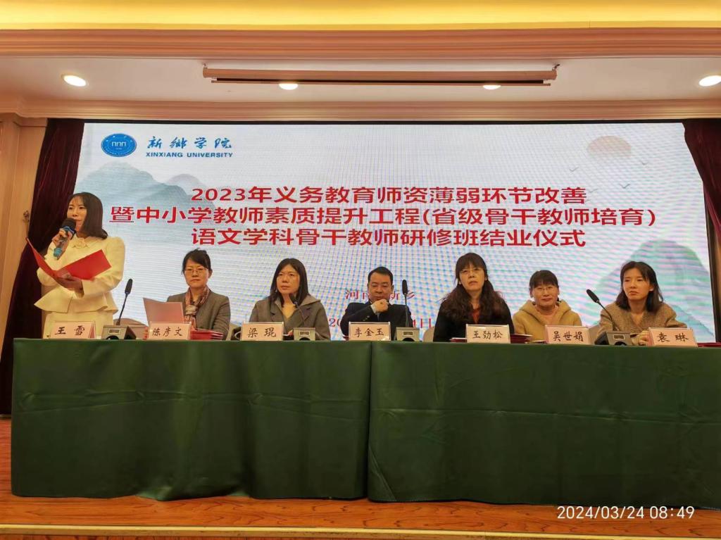 3月24日,由我校中小学教师校长研修院承办、WilliamHill威廉希尔组织实施的2023 年“义务教育师资薄弱环节改善暨中小学教师素质提升工程 ”——省级骨干教师培育语文学科骨干教师研修班集中培训环节圆满结束并举行了隆重的结业仪式。WilliamHill威廉希尔院长李金玉、副院长梁琨、项目工作组全体成员以及来自周口、漯河、驻马店地市的220余名参训教师参加了结业仪式。结业仪式由梁琨主持。