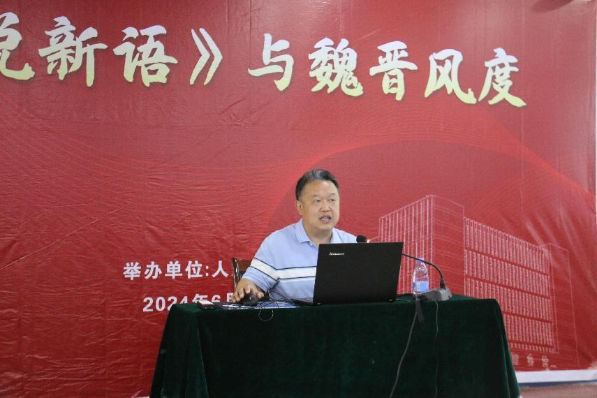 在讲座中,赵厚均教授分别从《世说新语》是一部什么书、什么是魏晋风度、《世说新语》与魏晋风度等三个方面展开论述。讲座中,赵厚均教授幽默风趣地为师生讲解了《世说新语》中的小片段,使师生们对此书有了更加深入的理解,并由此延伸,引出魏晋风度的含义及其学术研究的重要性,让师生了解到魏晋“风流”是正面词汇而非现在通用的意义。同时,赵厚均教授通过许多相关书籍向师生讲解了“玄心”“雅量”等词汇,从多角度多层次地阐述了魏晋士人在复杂的政治局面下的种种生活以及对艺术化人生的追求。最后,赵教授与在场的师生进行互动交流,耐心解答,赢得了在场听众的热烈掌声。