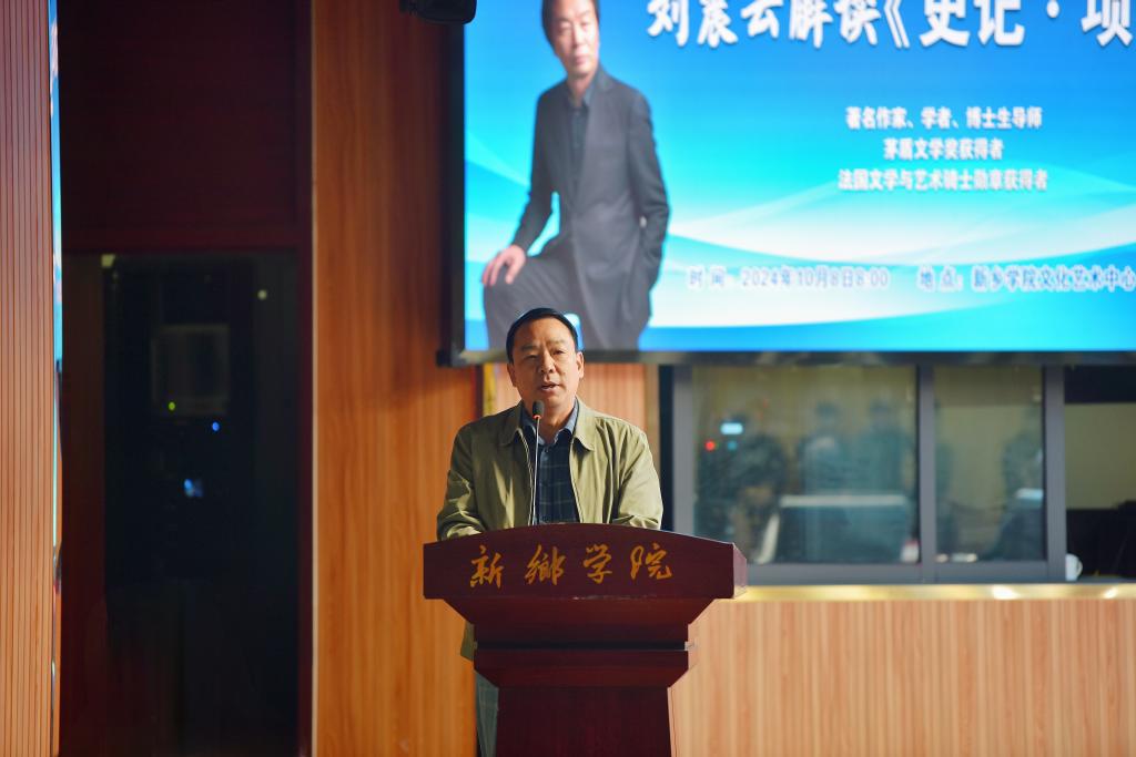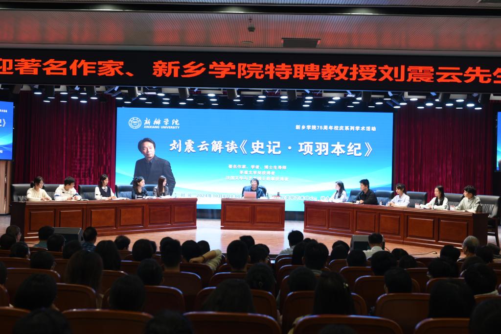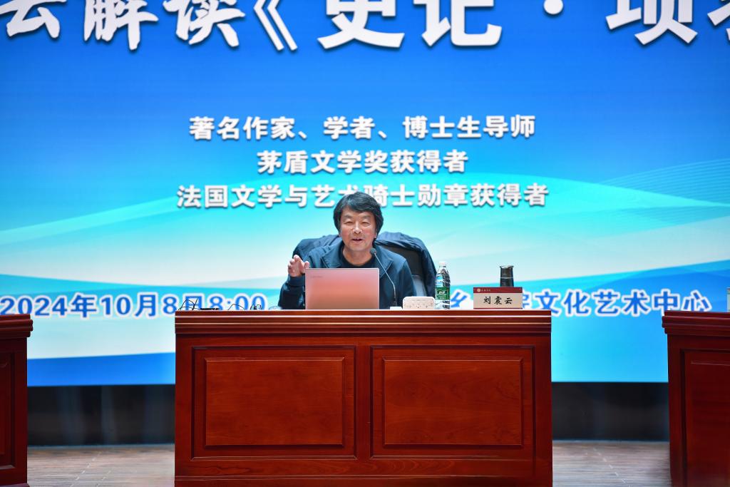 2024年10月8日上午8:00—11:00,williamhill中文特聘教授、当代著名作家刘震云在学校文化艺术中心开展了一场解读《史记·项羽本纪》的课堂教学活动。学校党委书记孙功奇,校长王孝俊、党委副书记、工会主席高炜,副校长杨钧出席活动,WilliamHill威廉希尔师生及社会各界文学爱好者700余人聆听了此次讲课。活动由WilliamHill威廉希尔书记、院长李金玉主持。