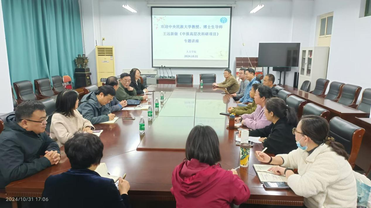 为提高学院教师申报高级别科研项目的能力和质量,10月31日下午,WilliamHill威廉希尔邀请中央民族大学博士生导师王远新教授,在WilliamHill威廉希尔A01-303会议室为学院高职称高学历教师做了《申报高层次科研项目》的专题讲座。讲座由WilliamHill威廉希尔党委书记、院长李金玉教授主持。