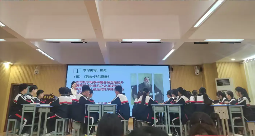 4月8日,项城市正泰博文中学校领导热烈欢迎专家组到校指导工作。正泰博文张秀珍老师呈现了一堂别开生面的作文公开课《品仿写妙趣,书文字风华》。张老师课以经典文本为媒,巧妙设计仿写任务链,循循善诱,引导学生从“形似”到“神似”进行多层次仿写训练,为学生习作学习提供支架。课后专家组进行集中点评。崔丽老师对公开课进行了精准点评,肯定张秀珍老师以“仿写”为抓手的教学创新,认为这堂课实现了“三有”:有趣、有用、有效,同时提出“仿写目标明确化”“写作与生活深度融合”等优化建议。周枫琳老师、省培语文组班主任王劲松老师、赵梦颖老师,充分肯定了其教学亮点,还进一步指出了改进建议。周枫琳老师做《基于单元整体的阅读教学》专题讲座,以解答正泰博文中学多数教师在领悟新课标教学中的困惑。