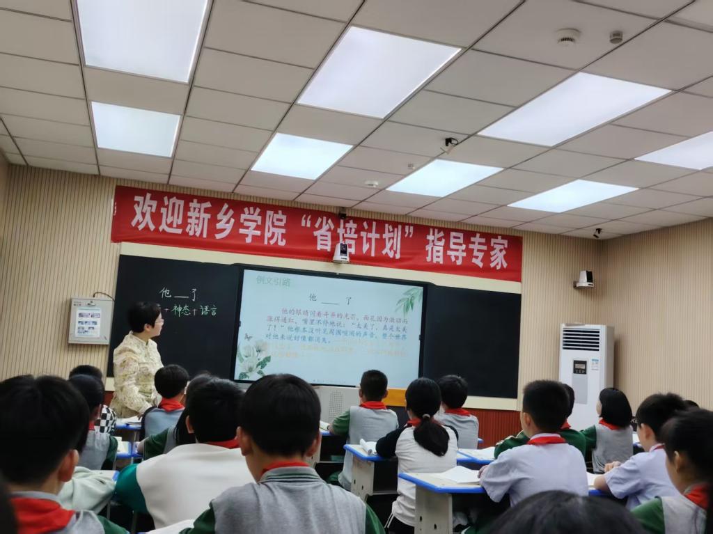 4月9日,专家组先后到周口市七一路第二小学和周口市城乡一体化示范区扶沟路小学进行跟踪回访。在周口市七一路第二小学,观摩刘霞老师的习作课《他_了》。这节课设计了五个教学环节:课文回顾、审题指导、例文引领、方法指导、评写结合。专家组崔丽老师肯定了刘霞老师充分利用统编版教材课文片段引导学生习作教学提供的支架方法,实现由读到写的迁移。省培专家周枫琳老师指出:刘霞教师在授课过程中,给了学生很多方法,学生会不会因为教师的“讲”而“会”,需要经过检验,可以采取前置习作任务的方式,充分调动学生的主体性进行习作训练,一切教学设计必须立足于学生的能力发展为教学中心。在周口市城乡一体化示范区扶沟路小学,王青老师展示了三年级下册第八单元习作《这样想象真有趣》的教学活动。崔丽老师认为通过多元情境激发学生的想象潜能,体现了“以学生为中心”的教学理念,教师设计的写作小妙招给学生提供了具体的抓手,但课堂包含培养想象能力并创编完整故事两个环节,课堂容量偏大,进行内容精减,放大亮点,深挖细磨,可能会有更好的效果。省培专家周枫琳老师提出教师给了太多方法反而会限制学生“想象”的翅膀,新课标主张设置“真实情境”进行教学,教师可以设置植物、动物、教室里的桌椅等真实情境,让学生想象、创编,真正把学生的能力发展作为教学设计的重心。