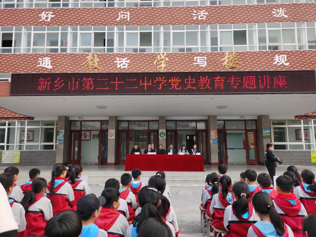 为庆祝中国共产党成立100周年,提升党史学习教育效果,增强对学生的思政引领。4月12日,我学院党史宣讲团成员王明有教授应邀为新乡市第三十二中学全体师生做了一场题为“百年筚路蓝缕奠基立业 百年创造辉煌开辟未来”的党史教育专题讲座。