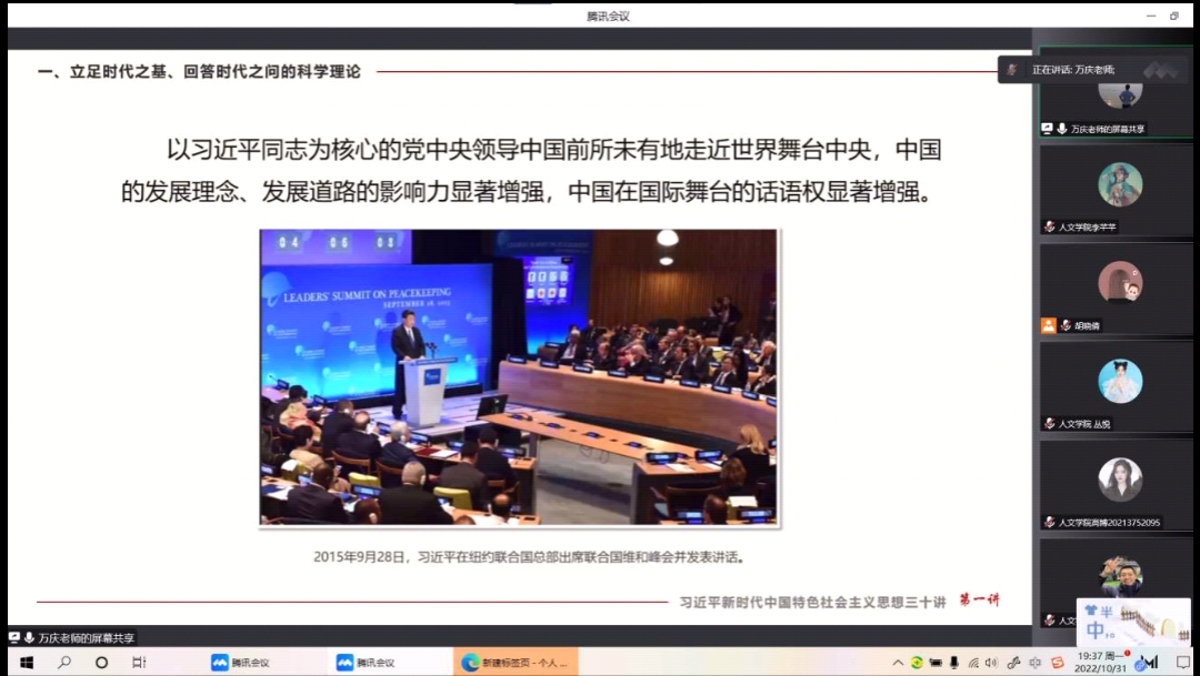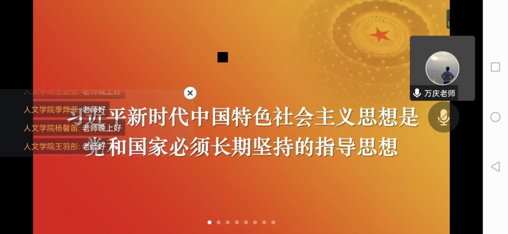 为加深入党积极分子对习近平新时代中国特色社会主义思想的认识与理解,进一步凝聚共识、开拓思想,引导优秀青年听党话、跟党走,提高入党积极分子的思想觉悟,WilliamHill威廉希尔积极组织开展第三十期党课培训活动。10月31日晚上7点通过线上腾讯会议的方式开展了第三次党课培训活动,此次党课培训活动由万庆老师主讲,WilliamHill威廉希尔入党积极分子参加。