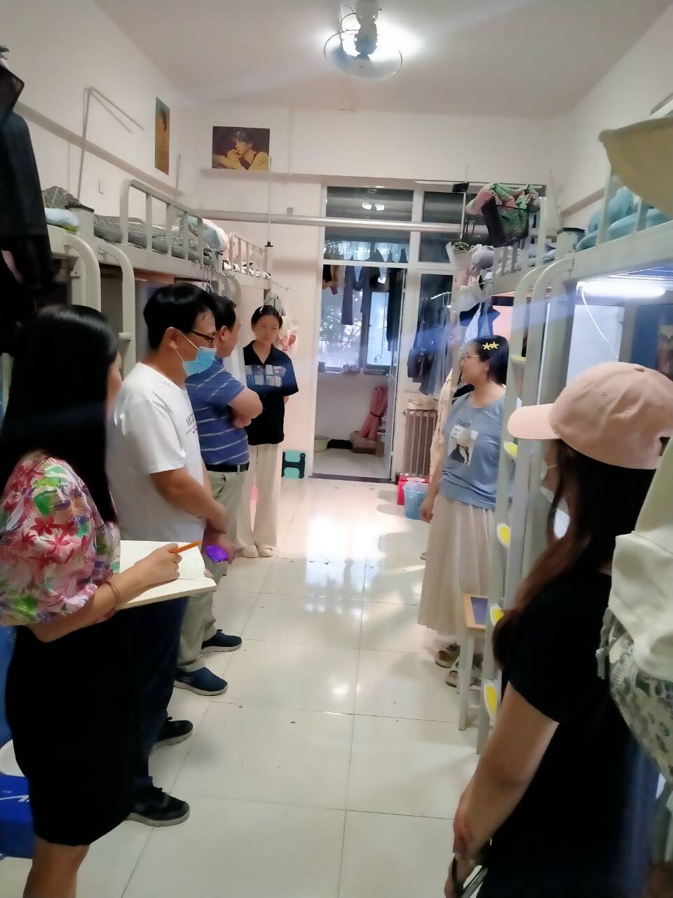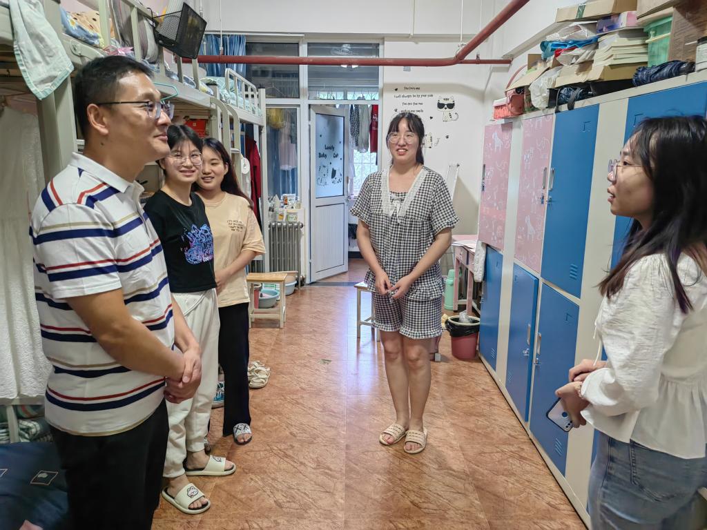 张胜利书记、李金玉院长一行等人深入D01、D07、D08、D09宿舍楼的各年级学生宿舍,与学生进行了亲切的交谈,老师们认真询问了各年级、各专业学生期末备考情况以及面临的生活、学习问题,鼓励同学们戒骄戒躁,合理规划,认真备考;提醒学生宿舍用电安全,注意勤通风,保持良好的宿舍卫生;提醒学生根据考试安排,提前购买返乡车票、了解返乡疫情防控政策,严格遵守疫情防控要求,做好个人防护措施,佩戴口罩、不聚集,安全返程,如有任何难题,及时通过辅导员向学院反映,学院一定尽全力解决同学们的实际困难。