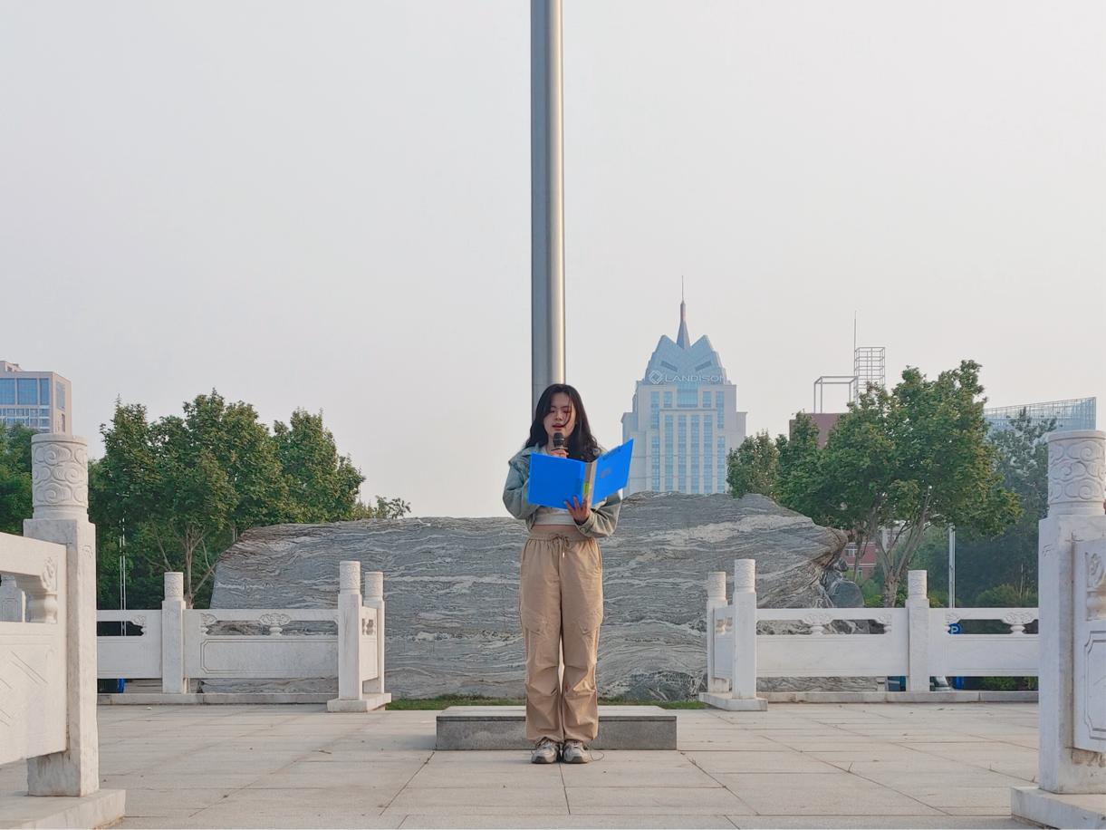 随后,学生代表生物工程学院2023级食品科学与工程类1班张景同学以“ 青春心向党,奋进新时代”为题进行了国旗下的演讲。她讲到:身处时代的浪潮之中,当代中国青年是与新时代共同奋进的一代,同时也是站在时代前端开拓创新的一代。她号召同学们要把握时代机遇和风向,顺应时代潮流砥砺前行,助力祖国发展,成为站在时代前端的中国青年。