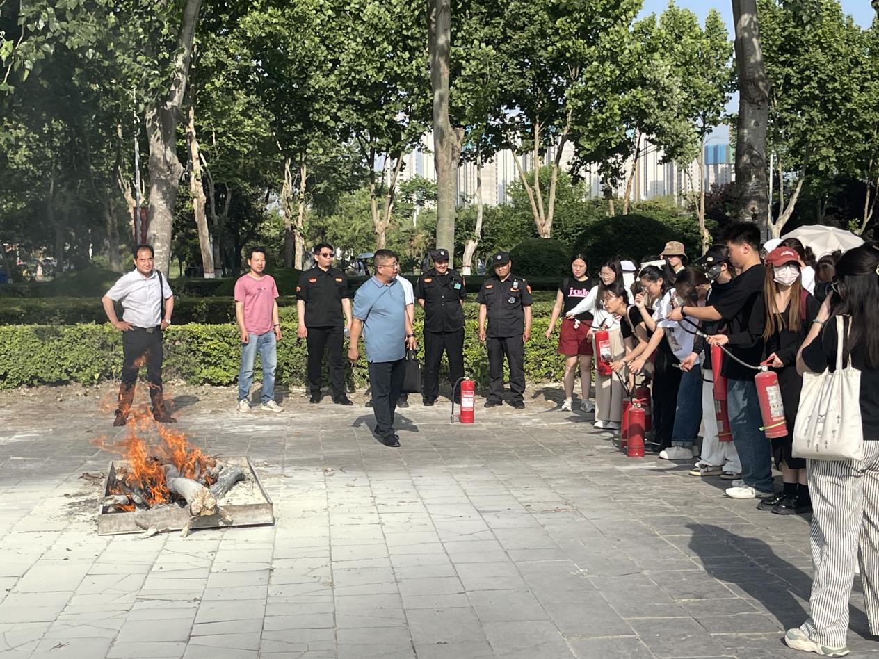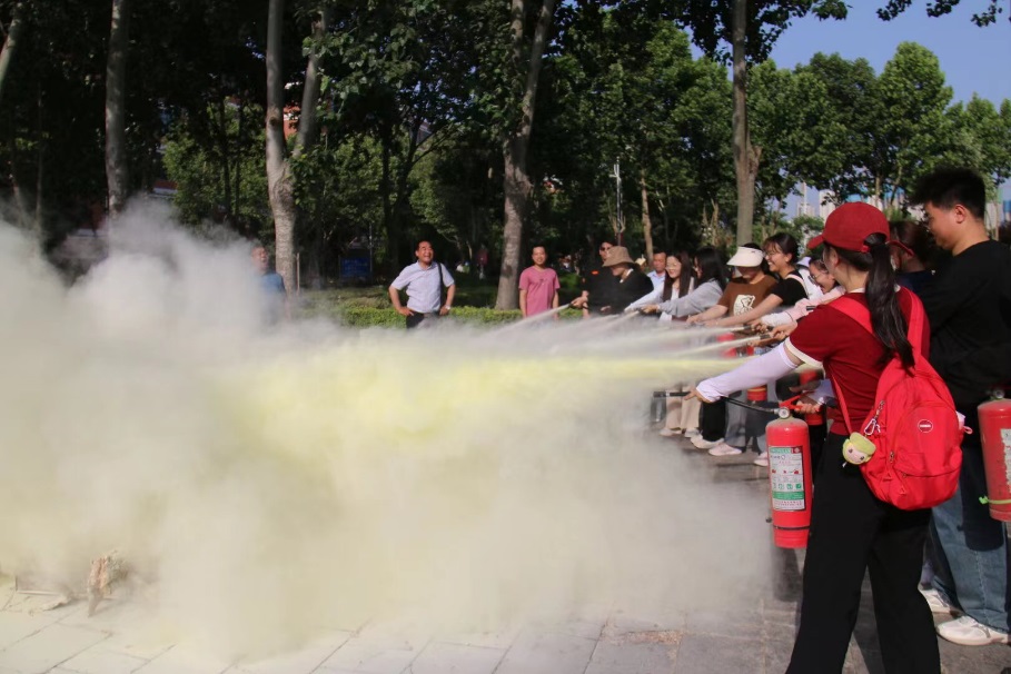 理论讲解结束后,随着模拟火警铃声的响起,紧急疏散演练正式开始。在学院老师的指导下,学生们迅速有序地从教室内撤离至空旷区域。随后,全体师生前往博雅广场,在保卫处老师的带领下,实际操作了干粉灭火器,并成功将火苗扑灭。