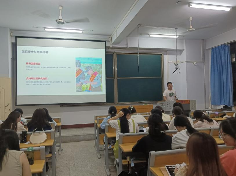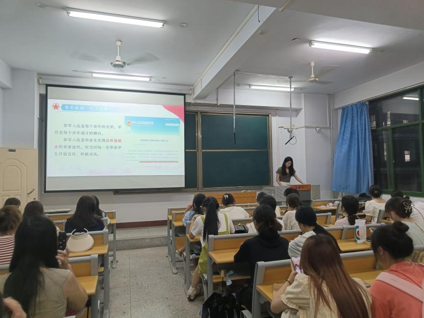 首先,苏安琪老师结合国防建设的新形势、新特点,就大学生参军入伍的优势、优抚待遇、职业发展空间等相关问题进行了详细解读,鼓励广大学子积极参与国防事业,将青春奉献给国家的建设和发展,为国防事业贡献力量。