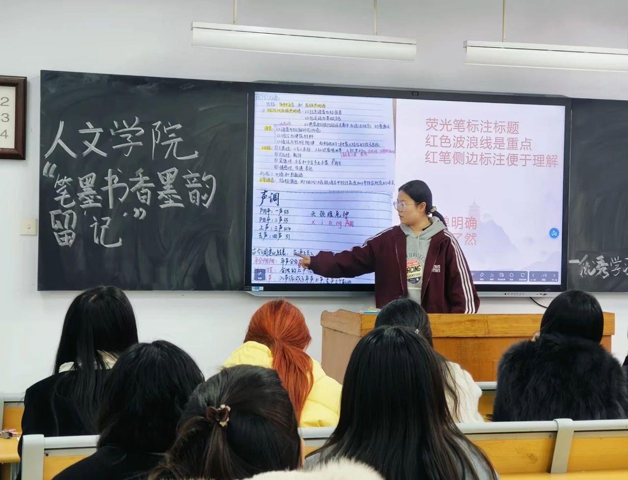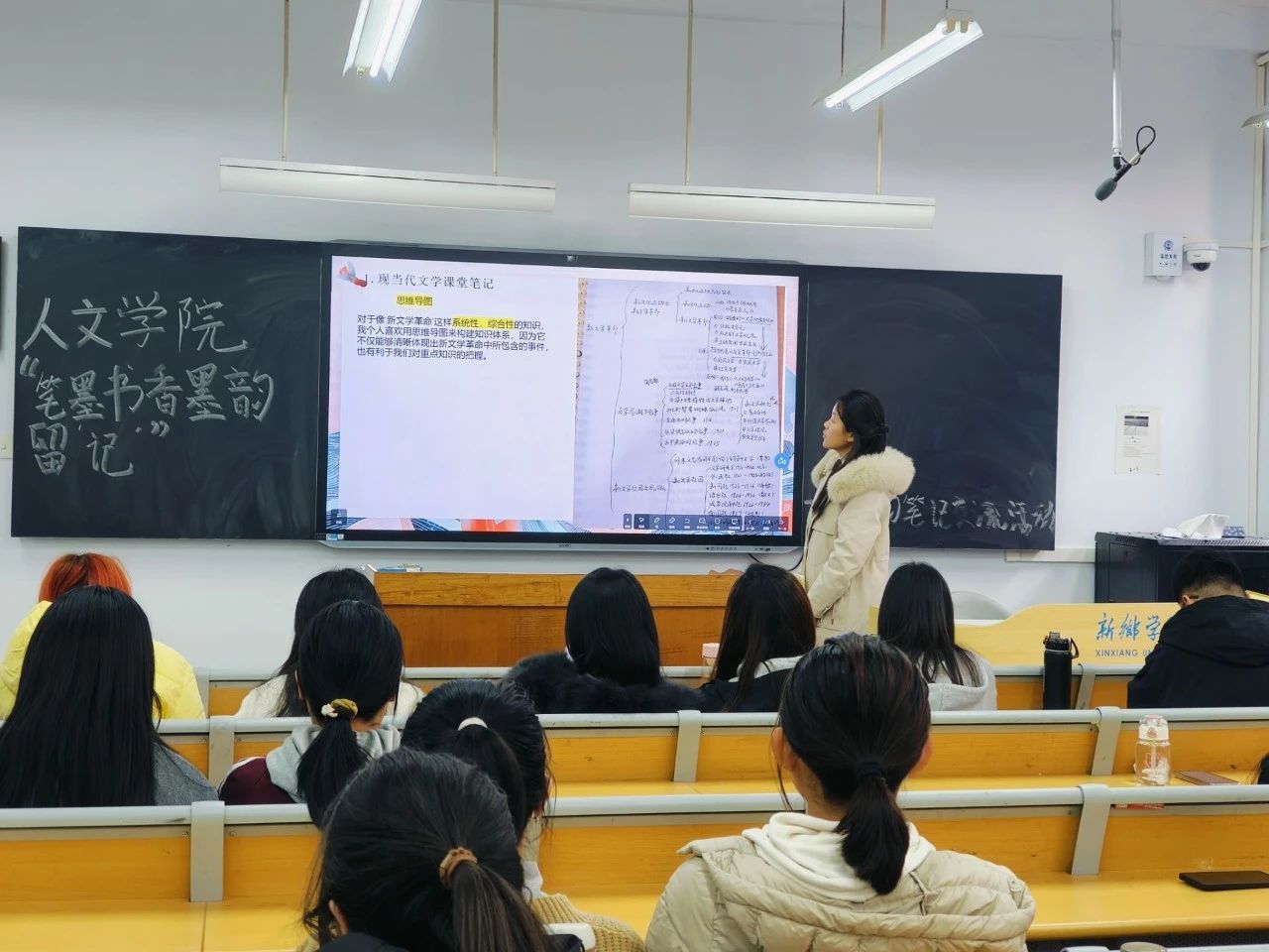 此次活动围绕优秀学习笔记展开了全面且深入的线下评比。活动前期,学院共征集了16本高质量的学习笔记。在评比环节,参与的学生以讲解PPT的形式展示自己所整理的笔记。他们在PPT中详细阐述了笔记的整理思路,从课程内容的梳理到重点难点的标注,从知识点的关联分析到个性化的学习心得,无一不体现出同学们对知识的深刻理解和扎实掌握,充分展示了人文学子勤奋好学的一面。