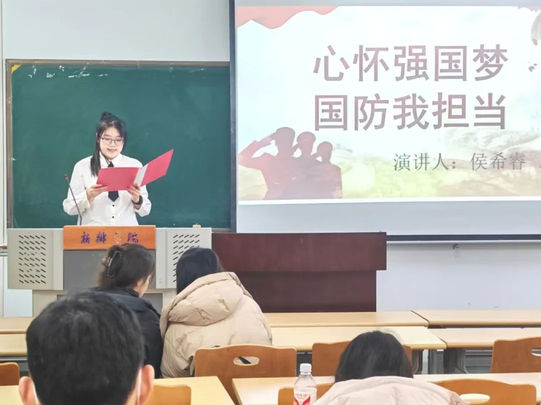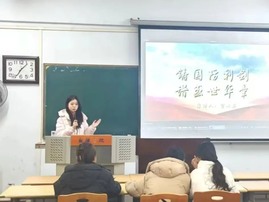 选手们依次进行演讲。选手们借助PPT、情景演绎等形式,围绕习近平强军思想内涵要义,回顾人民军队的光辉历程,聚焦国内外安全形势,抒发了他们对国防建设的所思、所感、所悟。他们以青春的热血为墨,描绘了一幅幅国防建设的壮丽画卷,用青春的激情呐喊,彰显了当代大学生的使命担当。演讲结束后,徐老师点评选手们展现出了多样的风采,演讲内容丰富,能围绕国防主题,从历史事件、现代军事力量、军人精神等多方面展开阐述,让听众对国防建设有了更直观清晰的认知,引导听众深入思考国防建设的意义和价值。最后袁琳指出,在演讲技巧上,选手们语速适中、语调抑扬顿挫,肢体语言较为自然,增强了演讲的表现力,但也存在一些不足,选手们在演讲时过于紧张,观众眼神交流方面有所欠缺,影响了演讲效果。希望选手们在今后能发扬优点,改进不足,演讲能力更上一层楼,更加深入地理解国防的意义与价值。在老师们的点评中,“我心中的国防”主题演讲比赛落下帷幕。