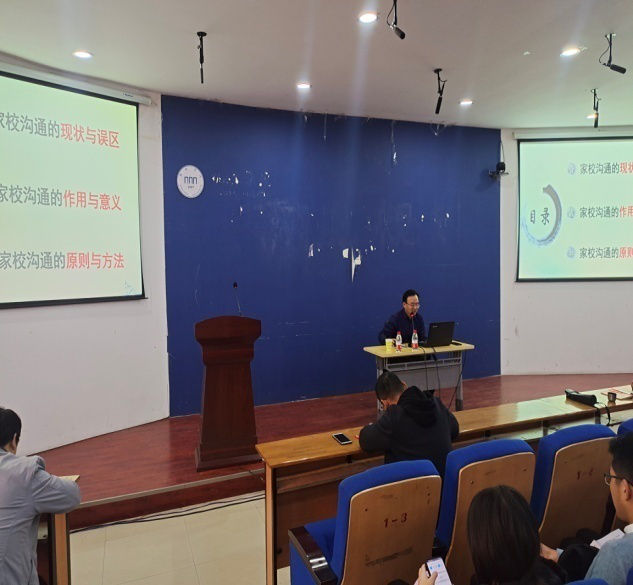 赵方强老师首先以杰克韦尔奇对于公司管理案例引入今天的主题沟通,随后从家校沟通的现状与误区、作用与意义、原则与方法三个方面展开讲解。赵方强老师以“通”则“不痛”的中医药理来比喻家校沟通的关系,谈到如今家校矛盾问题频现关键在于四点:苛求过高、网络助澜、一叶障目、不相往来。总而言之,家校矛盾问题的根源在于缺乏有效的沟通。在提出问题之后,赵老师又提出自己的建议:首要的是尊重家长、肯定学生,在家校沟通中要坚持一个核心、两个基点、三套系统、四种方式、五个原则、六个视角,坚信每个人的认知是可以通过沟通进行改变的。赵老师在演讲中传达沟通的技巧,同时也在指导中践行沟通的艺术,为学生们做了很好的示范和榜样。