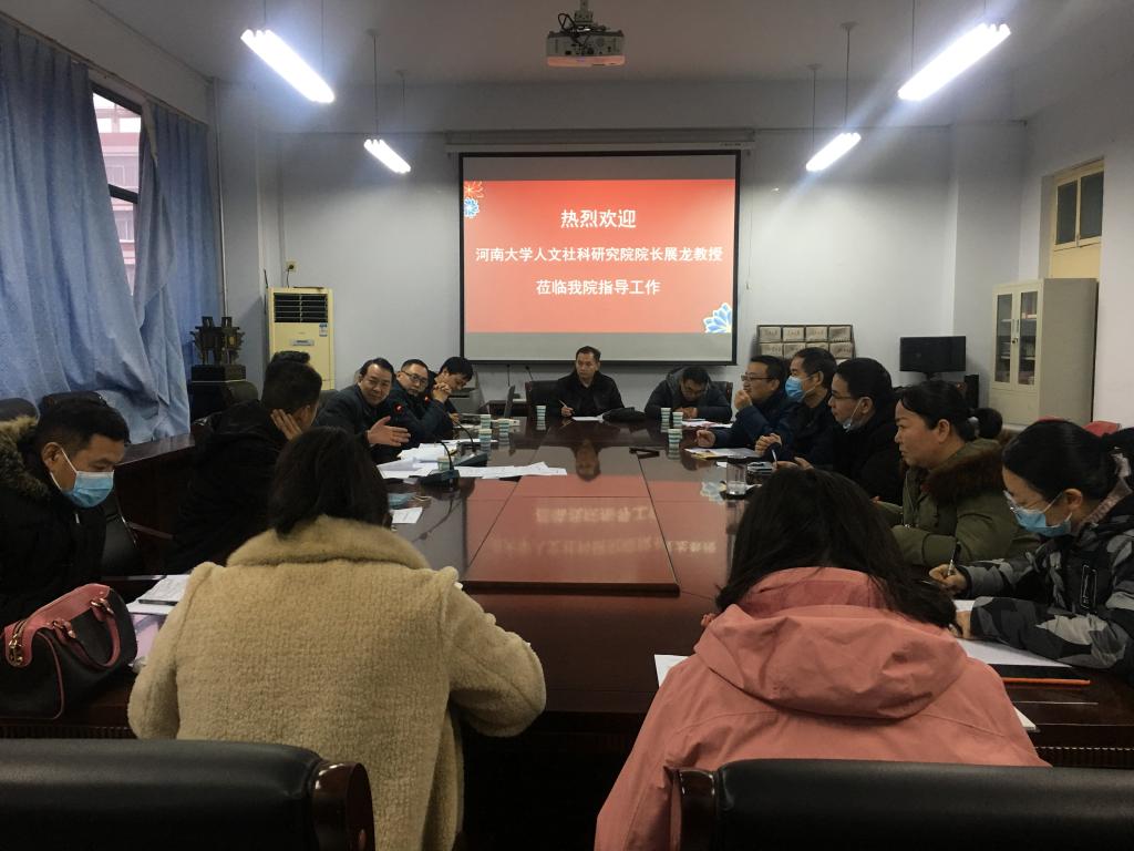 为持续提高WilliamHill威廉希尔国家社科基金项目的申报质量,1月22日下午,我院邀请河南大学人文社科研究院院长展龙教授前来指导国家社科基金项目申报论证工作。我院长李金玉、科研处副处长郭强、我院副院长申红星以及部分教师共同参加了论证会议。