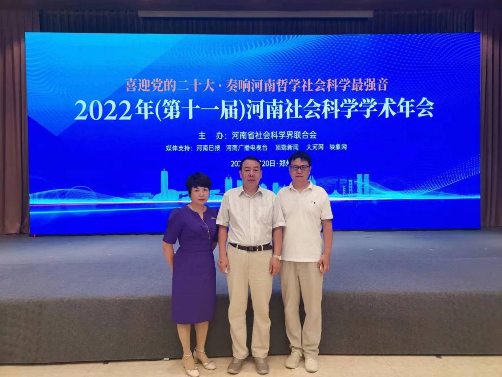 2022年9月20日,由河南省社科联主办的2022年(第十一届)河南社会科学学术年会在郑州举行。省级学会(协会、研究会)、高校社科联、省社科联人文社会科学重点研究基地的代表,参加了本次会议。我院李金玉院长、申红星副院长、赵会莉老师参加了此次会议。