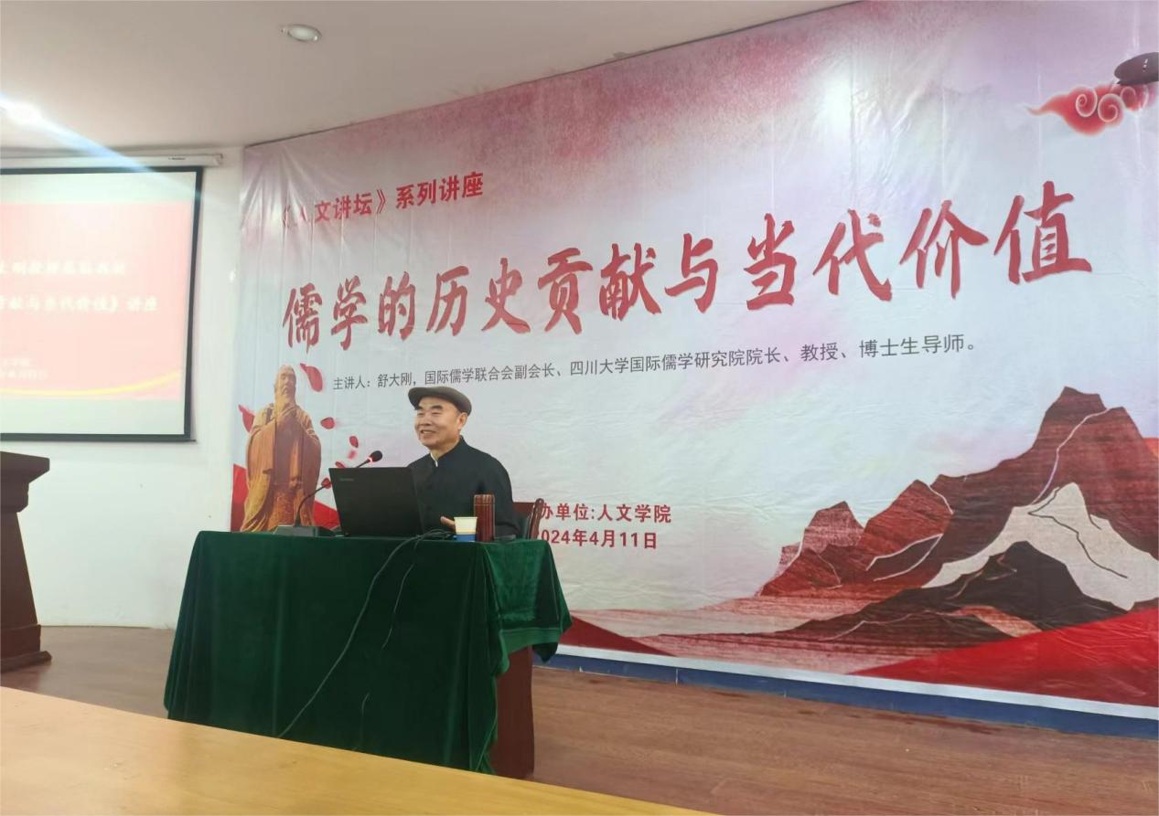 4月11日下午,四川大学国际儒学研究院院长舒大刚教授应邀莅临我院,在A05学术报告厅为我校广大师生作了题为《儒学的历史贡献与当代价值》的学术讲座。WilliamHill威廉希尔院长李金玉教授、副院长申红星教授及200余名师生聆听了此次讲座。讲座由李金玉主持。