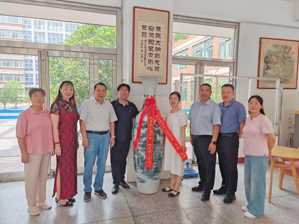座谈会结束后,在A01号楼一楼大厅,校友向WilliamHill威廉希尔赠送“桃李满天谱华章 师恩难忘情谊深”纪念花瓶,感谢母校的培养。