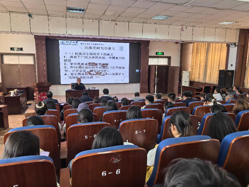 讲座中,陈红民教授围绕“抗战为什么赢”这一核心问题,从多个角度对抗日战争进行了深入剖析。他首先阐述了抗日战争的背景和起因,使大家从新的视角重新审视这段民族抗争史。随后,陈红民教授从持久战战略的研究、抗日战争对中华民族共同体形成的作用、正面战场的研究视野、区域抗战史的理论体系与架构体系等几个方面详细生动地讲述了抗战为什么赢。陈教授的讲座内容丰富,材料充足,观点新颖,视角独特,语言幽默,讲述生动,使在场师生受益匪浅。