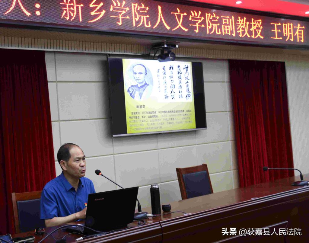 为深入开展党史学习教育,引导广大干警学史明理、学史增信、学史崇德、学史力行,推动党史学习教育和队伍教育整顿走深走实,5月28日下午,我院党史宣讲团成员王明有教授应邀获嘉县人民法院,为全院干警作了题为“庆祝中国共产党成立100周年”的党史专题讲座,讲座由获嘉县人民法院党组书记、院长耿德行主持。