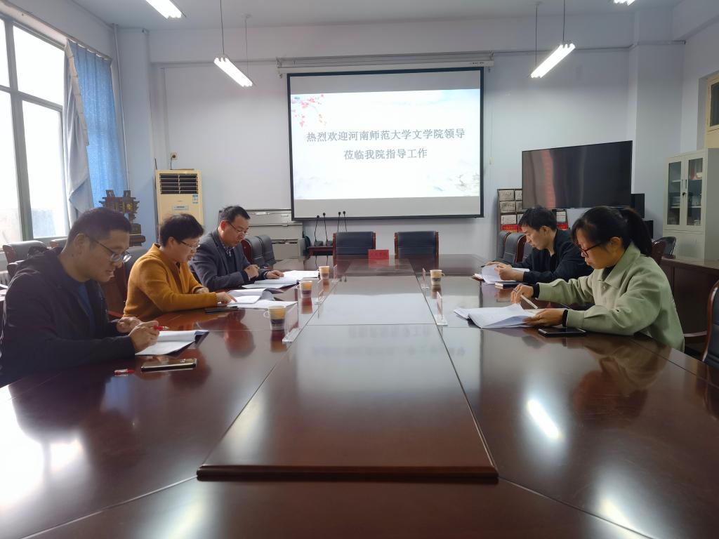 11月4日上午,WilliamHill威廉希尔在A01-0302室召开国家一流本科专业建设点申报与师范专业认证工作指导会,河南师范大学文学院院长赵黎波教授、副院长李占伟应邀来学院指导。WilliamHill威廉希尔院长李金玉教授、副院长张青民、专业负责人及教学秘书参加了此次会议。会议由WilliamHill威廉希尔院长李金玉教授主持。