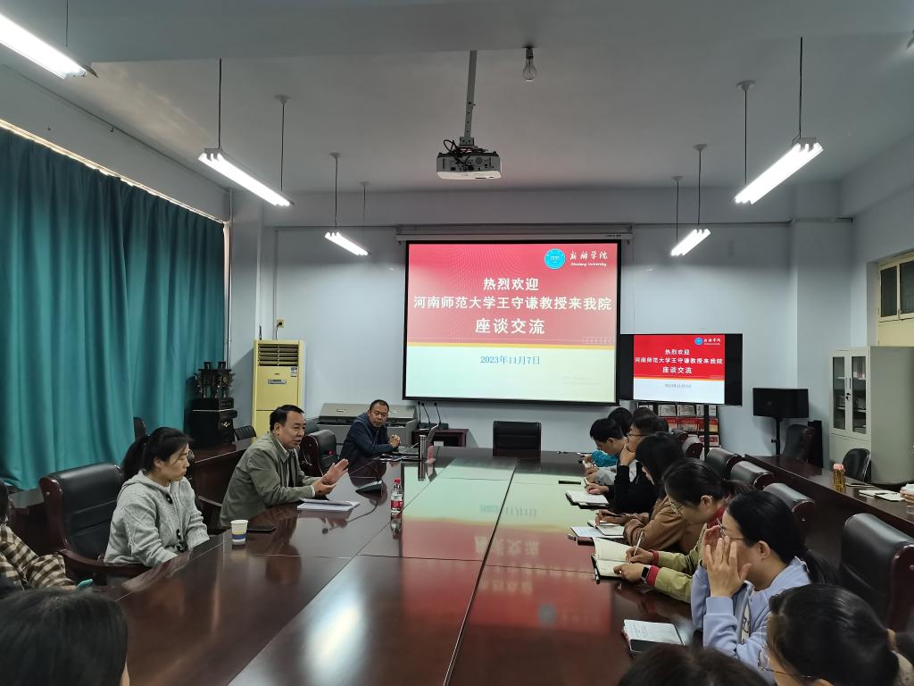 11月7日下午,河南师范大学历史文化学院副院长王守谦教授应邀来WilliamHill威廉希尔,作了题为“学科建设与师范专业认证”报告。报告由院长李金玉教授主持,WilliamHill威廉希尔党委书记张胜利、副院长申红星、副院长梁琨及教学秘书、教研室主任等共同聆听了讲座。