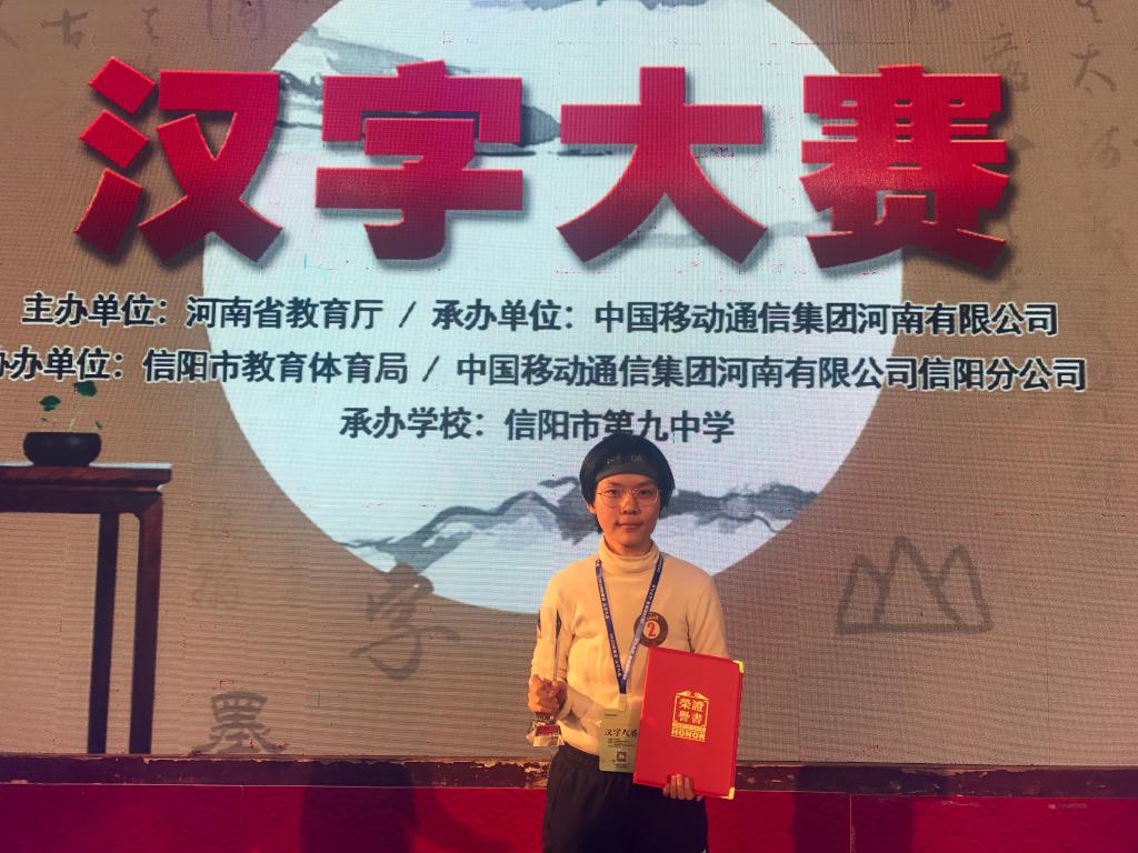 WilliamHill威廉希尔学生在2020年河南省汉字大赛中再获一等奖