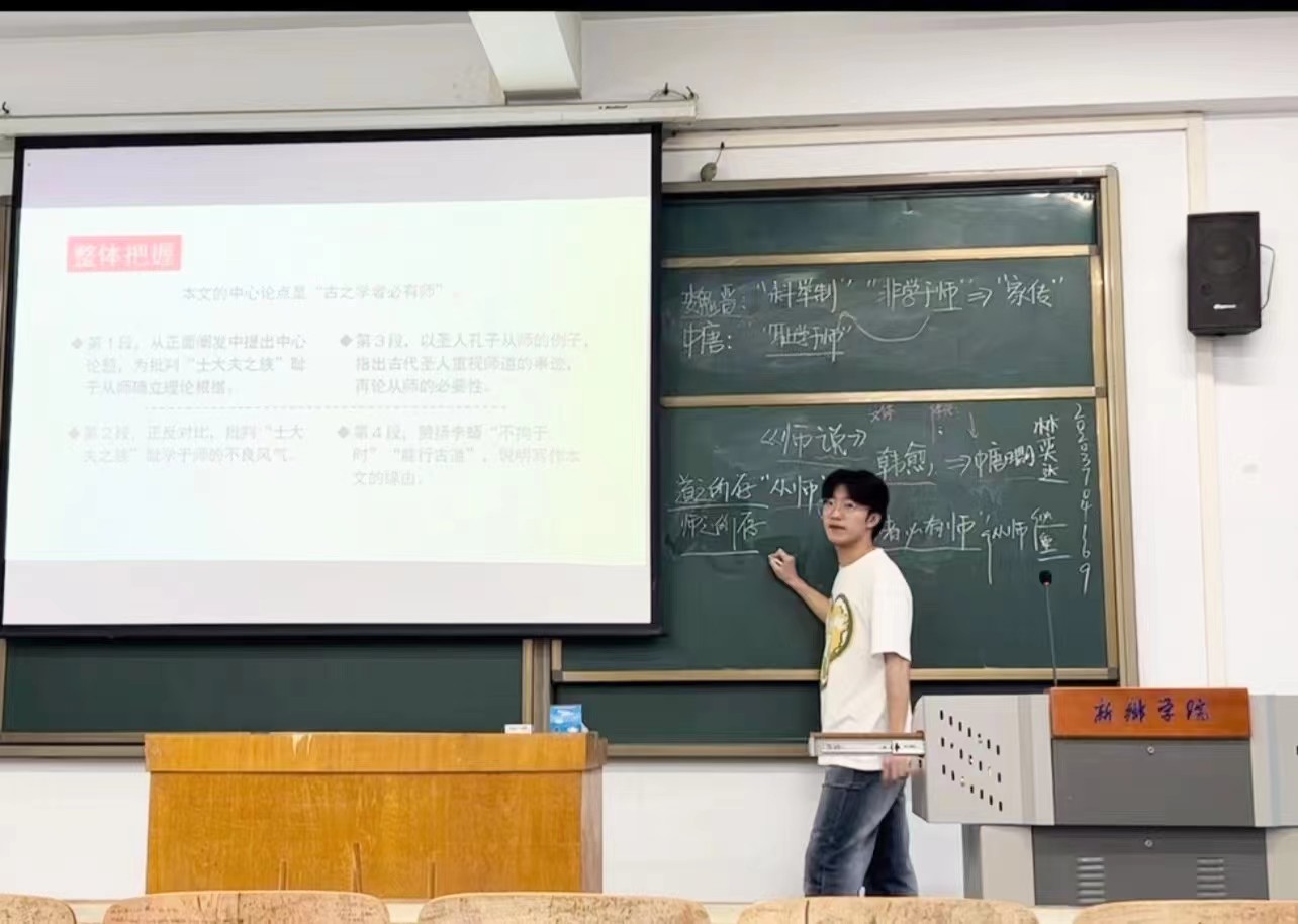 知行合一,教学相长。课堂教学能力的锻炼是提升师范生教育教学技能,夯实教育教学基本功的必经之路。虽然不能到中小学教学一线去,但同学们在老师的指导下,认真观看学习名师授课实录,钻研教学设计,用微课的形式练习讲解文本,组织课堂。经过一周的练习,同学们用独到的教学设计,巧妙的多媒体辅助演示,展示自己的专业素养和综合素质。