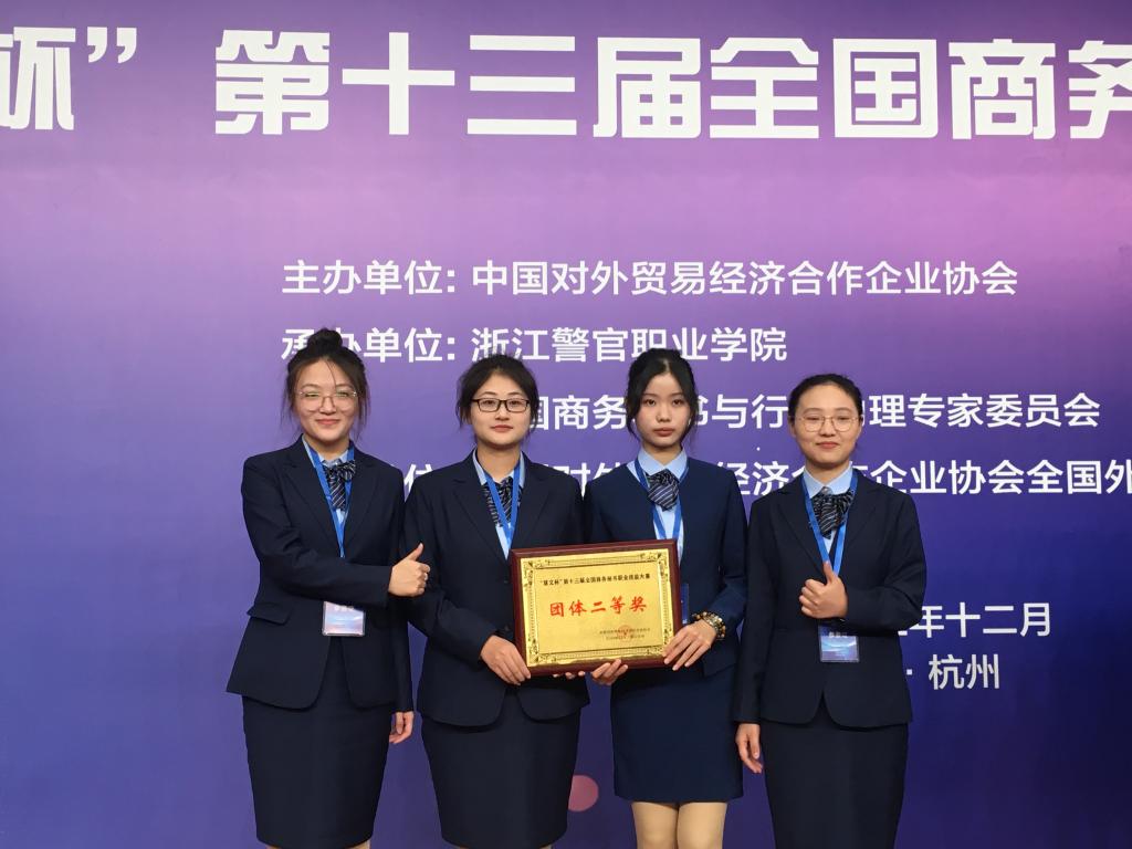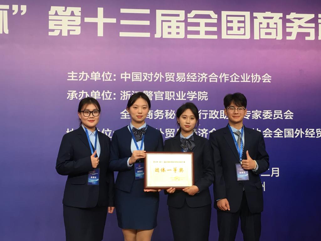 “慧文杯”第十三届全国商务秘书职业技能大赛于2023年12月1日至3日在杭州举行,本次赛事由中国对外贸易经济合作企业协会主办、浙江警官学院承办,我校WilliamHill威廉希尔选派的8名秘书学专业学生参加了大赛。经过激烈角逐,我校代表队获得了本科组团体一等奖、二等奖各一项,个人最佳口才奖一项的好成绩。